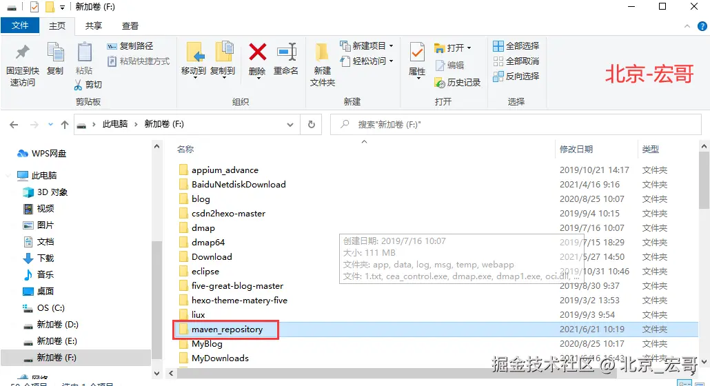 1.建立手动仓库maven_repository,宏哥建立在F盘,如下图所示: