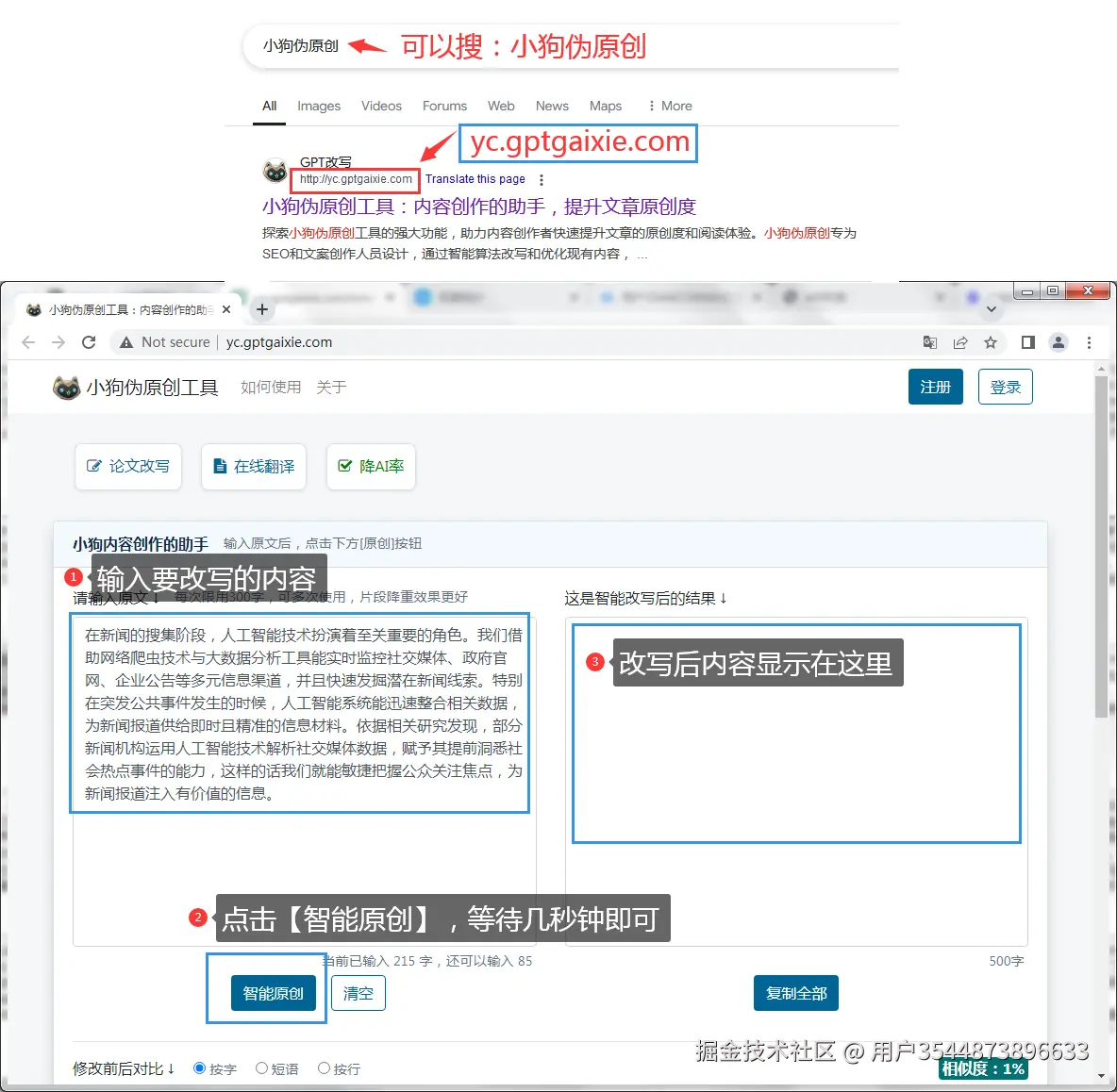 小狗伪原创的官网是:yc.gptgaixie.com/ 。