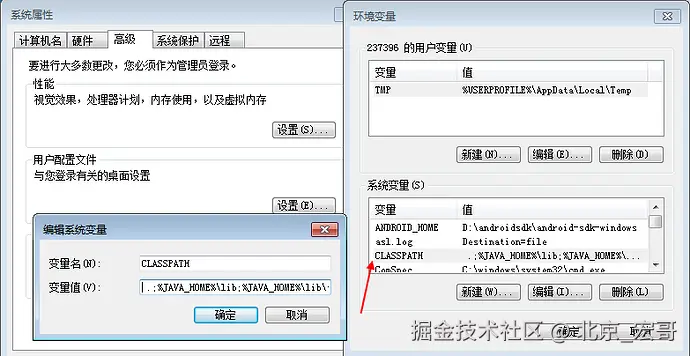 (2)CLASSPATH--- .;%JAVA_HOME%\lib;%JAVA_HOME%\lib\tools.jar;