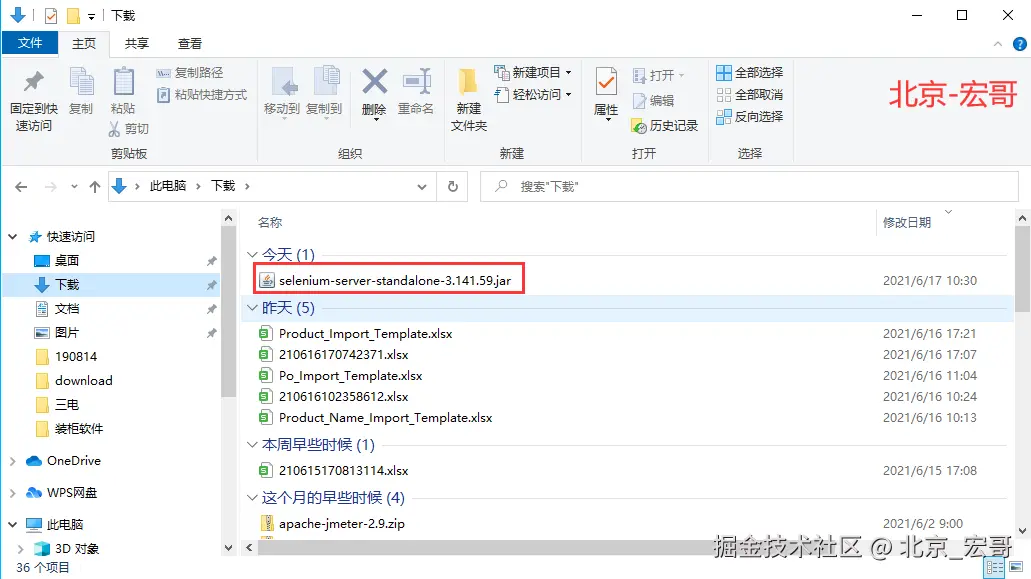 1、下载selenium-server-standalone.jar 。下载地址也在:官方下载地址: www.seleniumhq.org/download/ 如果官方地址无法访问自己可以网上搜一下应该可以 轻松的下载到,如果实在找不到可以微信搜索“北京宏哥”公众号,关注宏哥以后进入公众号发送“jar包”来获取下载方法。