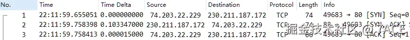 此时通过 IP.ID 加以佐证,No.24 的 IP ID 为 49749 ,在 No.20 和 No.22 之前,因此 No.24 实际上是乱序,而不是快速重传。