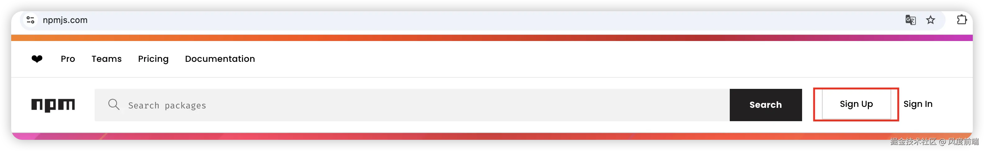 首先登录 npm 官网,选择右侧的sign up进入到 npm 的注册页面: