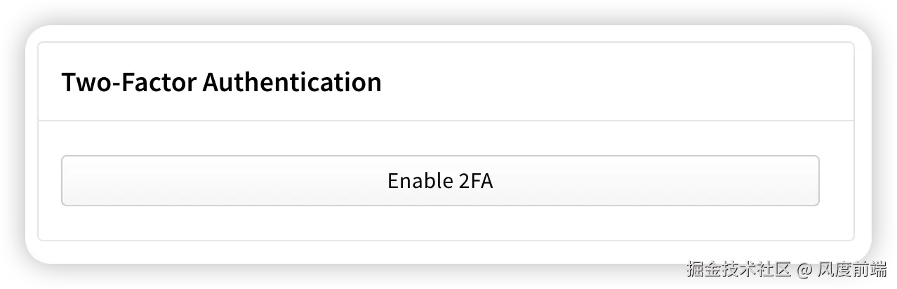 在账户设置页面的 "双重身份验证" 下,单击启用 2FA。