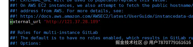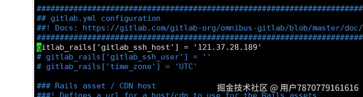 # gitlab_rails['gitlab_ssh_host'] = 'ssh.host_example.com'(大约在66行位置)
