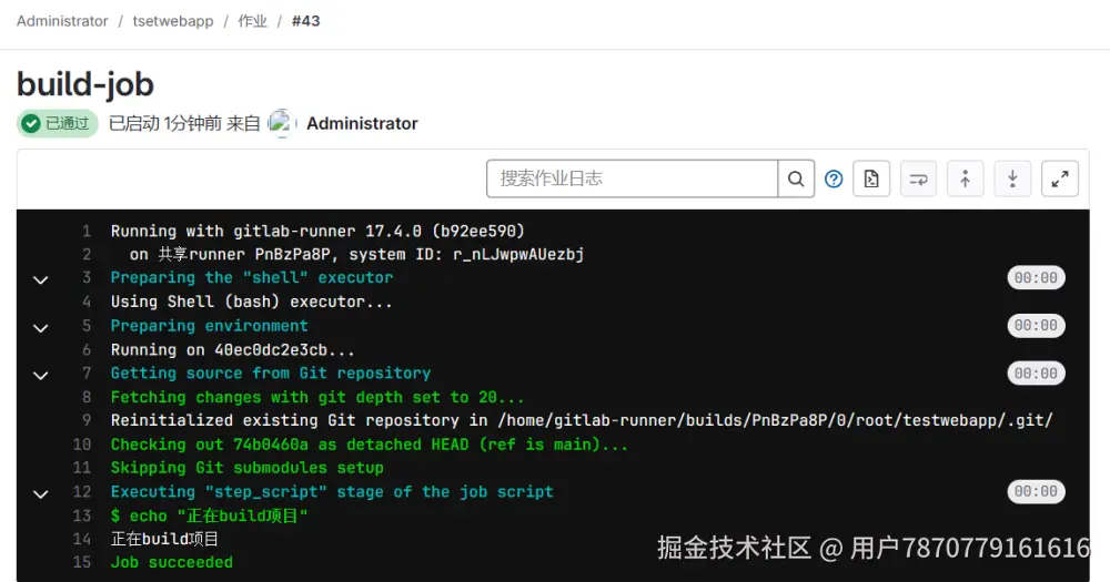 以上只是一个监听gitlab代码提交自动触发构建和部署的简单案例,在GitLab CI/CD的实际开发场景中,使用.gitlab-ci.yml文件来定义构建、测试、部署等流程远比上述简单的示例复杂和多样化。根据你的具体需求和项目规模,你可以通过调整CI/CD流程以适应你的工作流程和环境。
