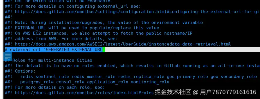 执行命令 vim srv/gitlab/config/gitlab.rb 找到下面这个配置
