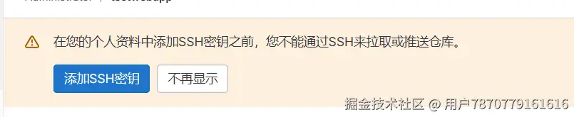 创建项目后,系统提示我们还没添加SSH公钥,点击添加公钥去添加公钥