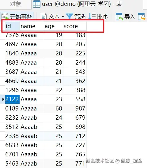 凯歌: 比如,我们的user表中,有四列