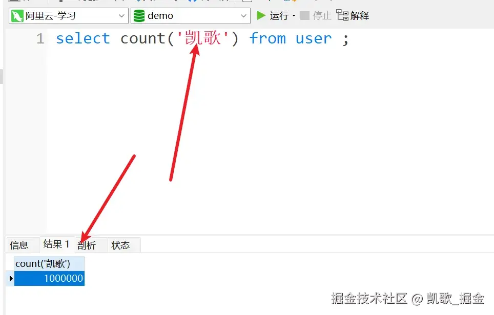 凯歌: 但是!count(*) 实际上,我们就是想统计一下一共有多少行,不需要看里面是不是有哪一行没数据