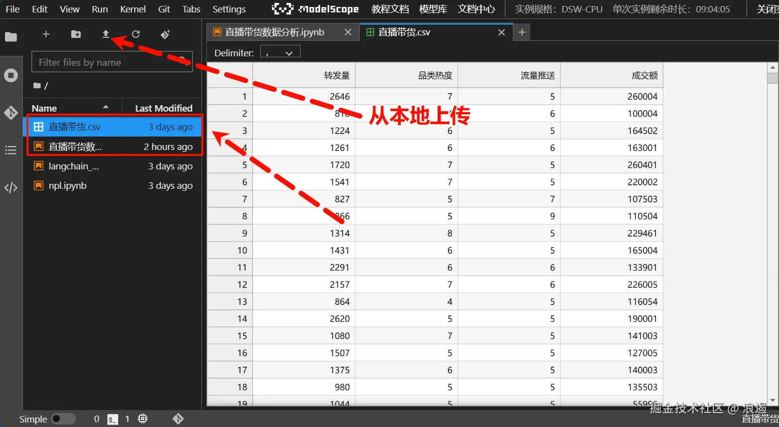 想直接复现的倔友 ,可移至文末 , 有在 Notebook 的全部截图 , 数据样本可在文中 gitee 地址获取