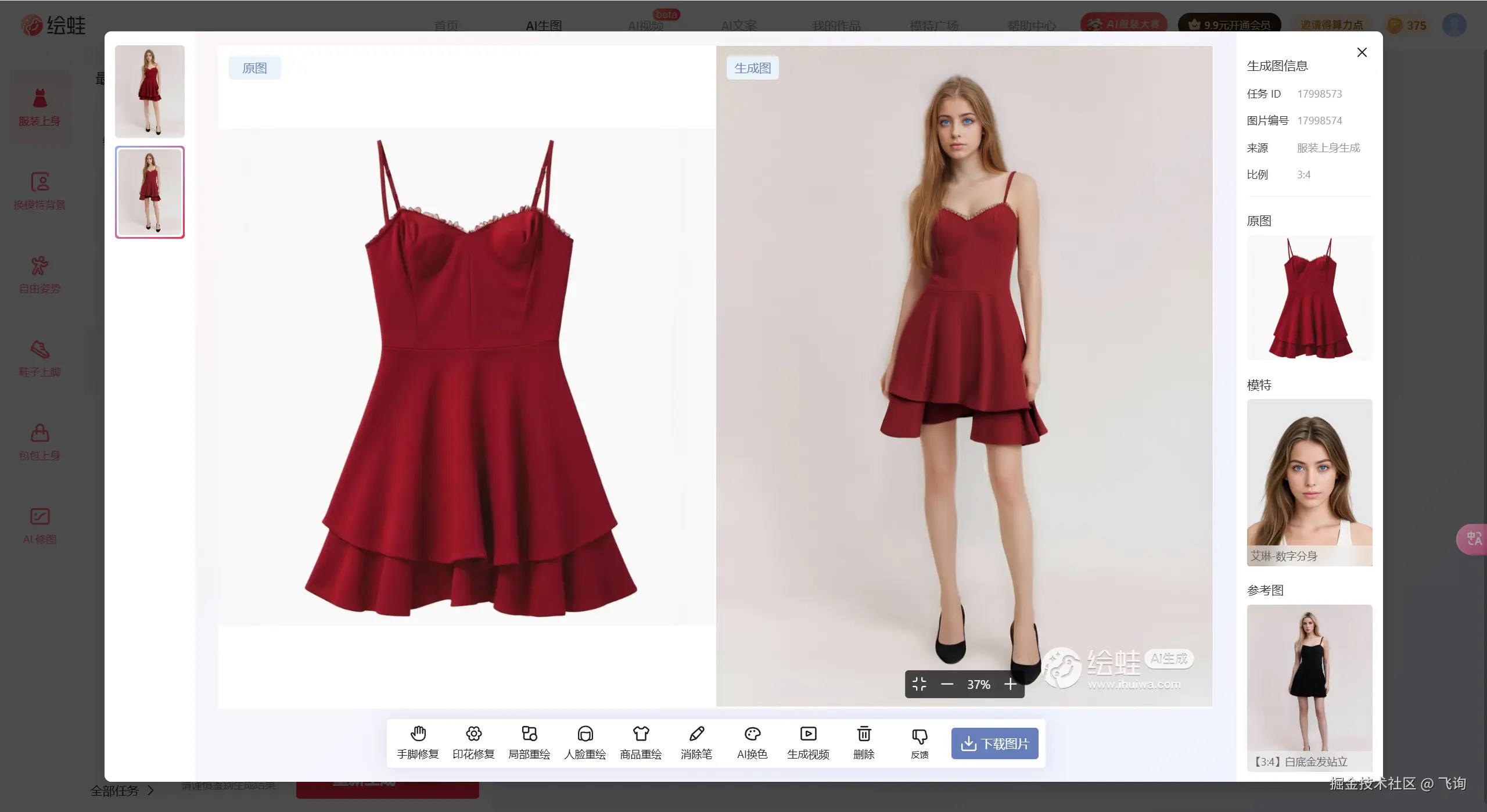 目前生成的图片,下载没有水印