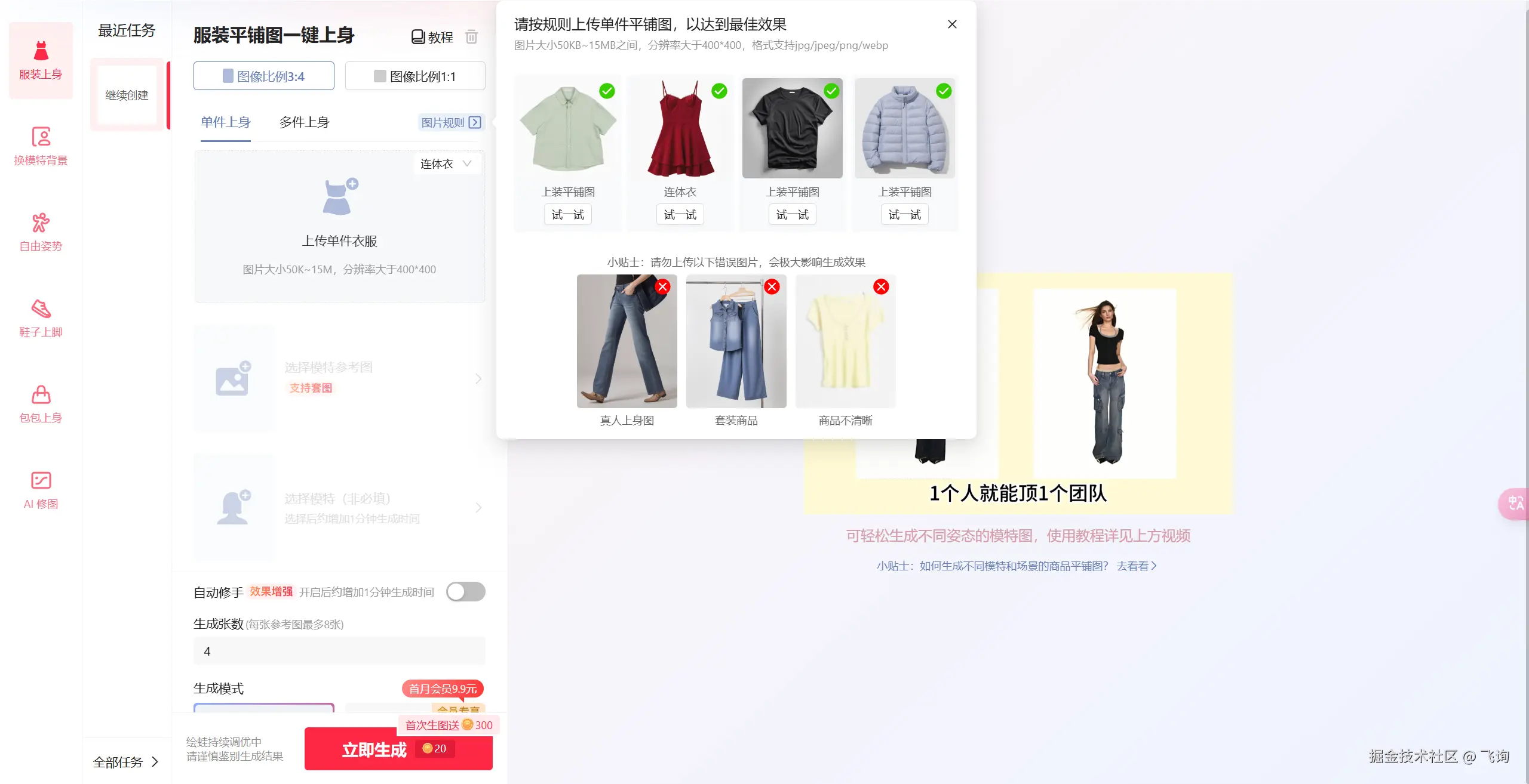 AI 生成模特图片,他可以选择模特的姿势,根据模特的姿势,模特,衣服生成 图片