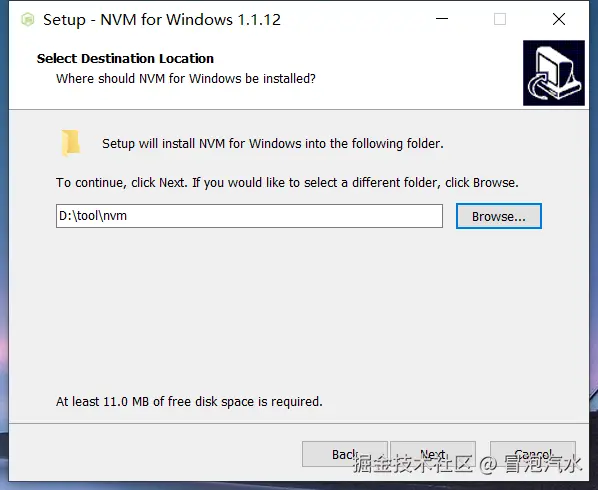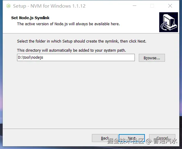 我是给放到 D盘,新建文件夹 tool,它会自动创建 nvm