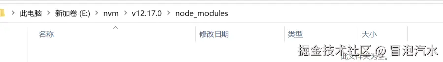 你会发现刚才安装 nvm 的时候写的 nodejs 文件夹没有显示,没显示这才是正确的。