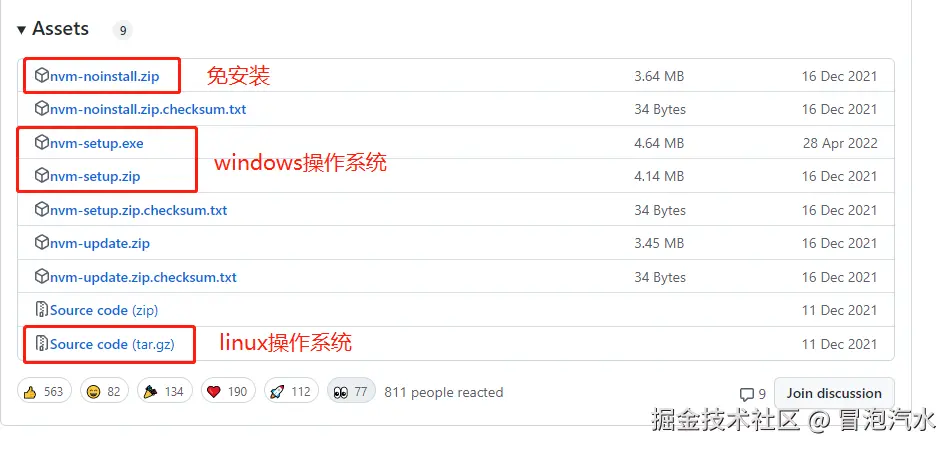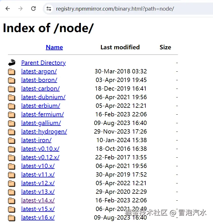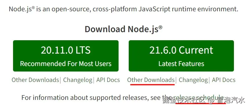 (2)建议下载 .zip 压缩文档,文档小,下载速度快,想安装在哪里就在哪里解压。旧版本的 node 在官网中的 Other Downloads 里面,也可以点击下方的 Releases 进行下载。