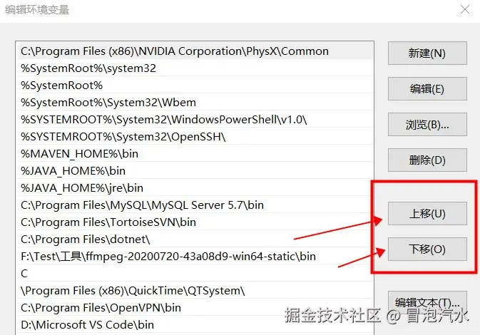 (1)打开系统环境变量,找到 path,想用哪个版本,就把哪个 node 变量上移到所有 node 变量的最前面。