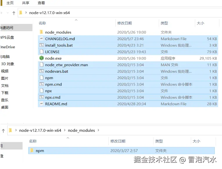 可以看出并没有 npm 文件,需要自己到 npm官网下载手动安装 node 对应的 npm 版本