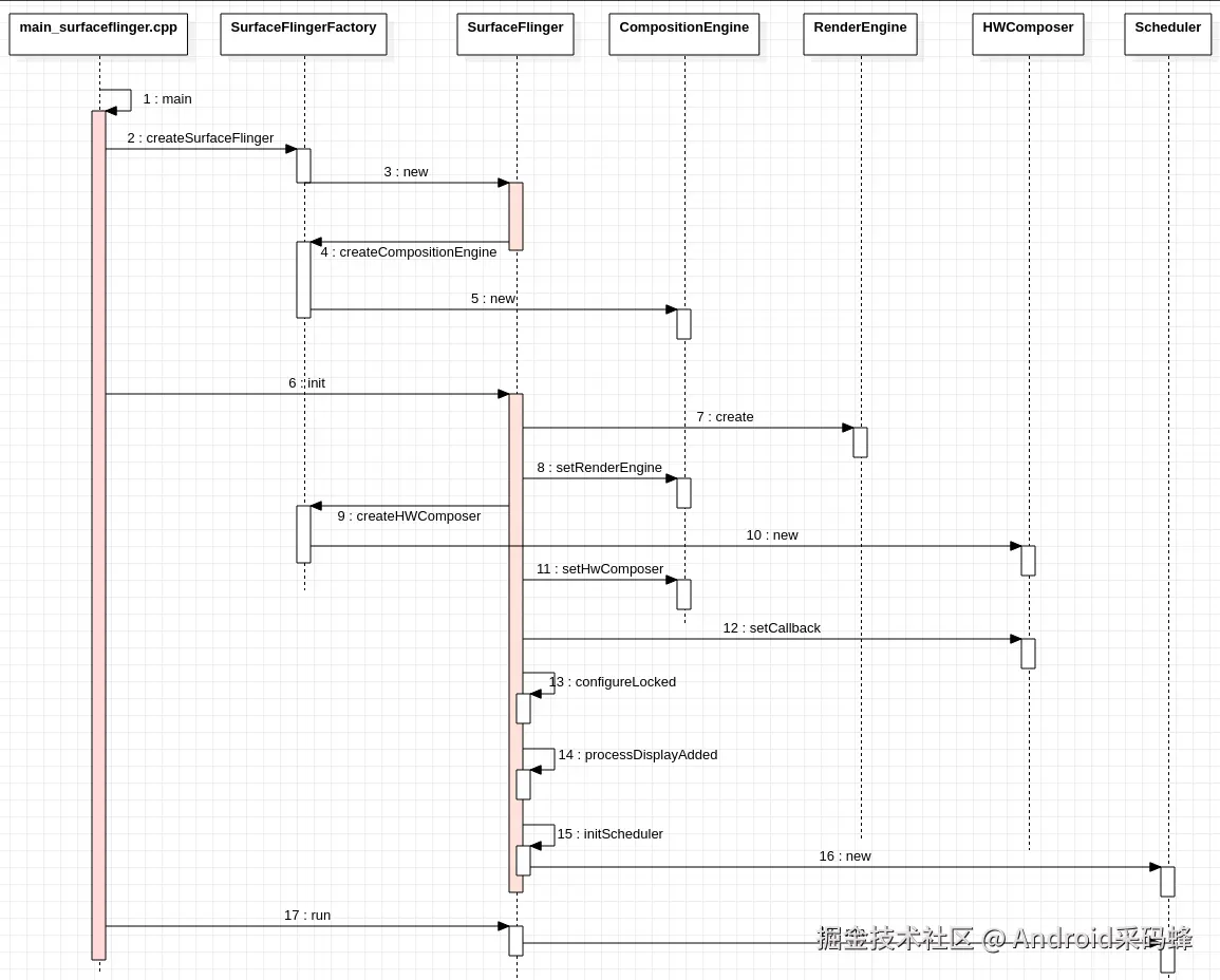 main()函数执行后,会通过SurfaceFlinger::createSurfaceFlinger()创建SurfaceFlinger实例,并触发其构造方法的执行:
