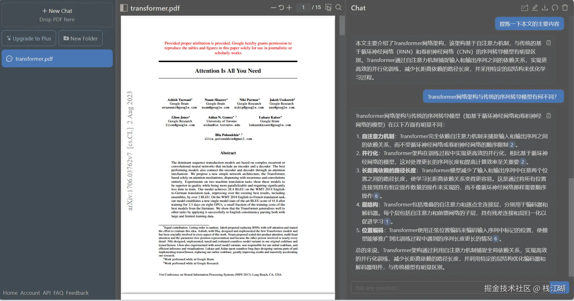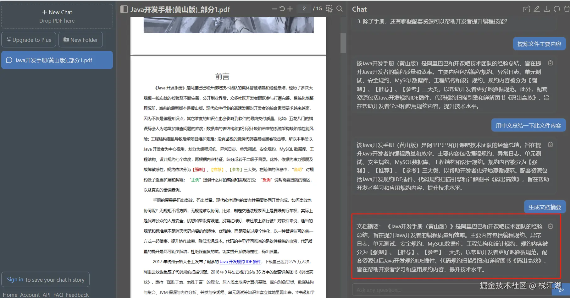让AI提炼PDF文件中的主要内容,并与AI对话,提相应的问题。