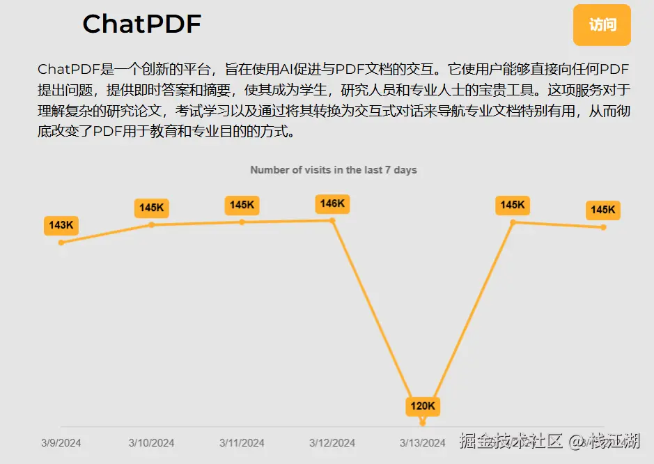 上图是Leaderboard显示的ChatPDF每天的访问量。