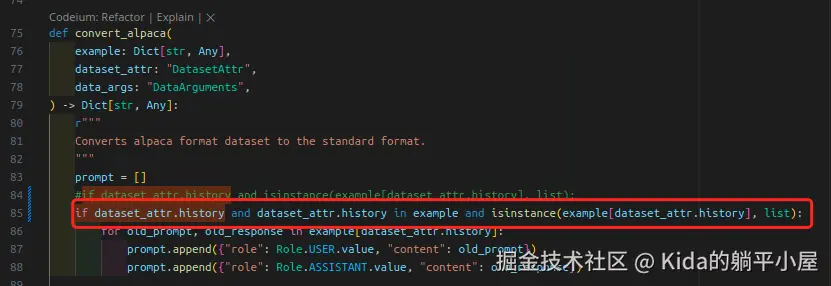 首先,我们需要创建自己的数据集并保存成 json 文件。我这里创建的是 alpaca 格式的数据集,具体格式如下: