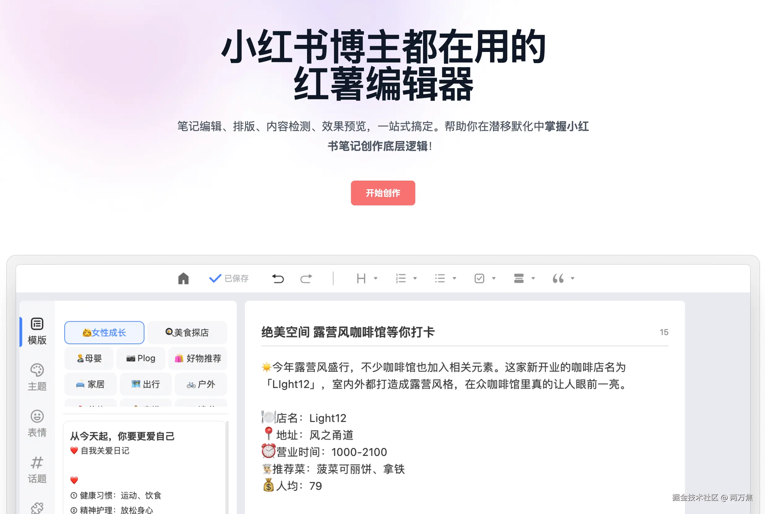 - Reditor编辑器: 专为小红书博主打造的智能编辑工具,结合了AI 智能文案生成、实时预览、敏感词检测等多种功能