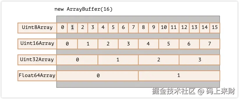 除了Uint8格式外还有其它TypeArray的格式相同方法,请参考MDN