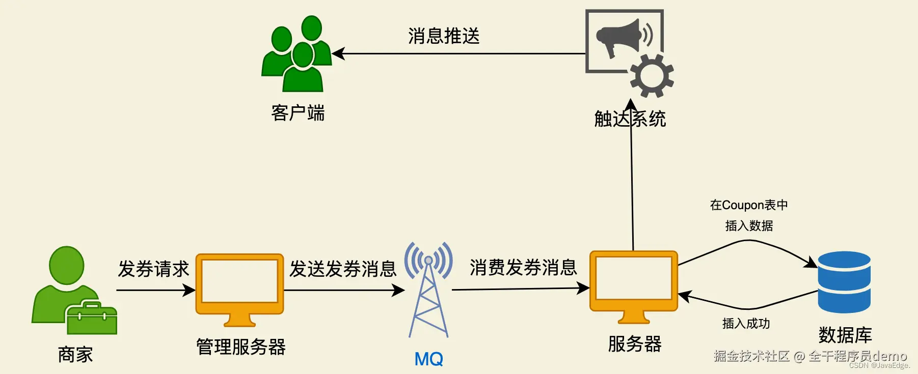 - 管理服务器根据【用户ID】、【券批次ID】生成消息,发送到MQ