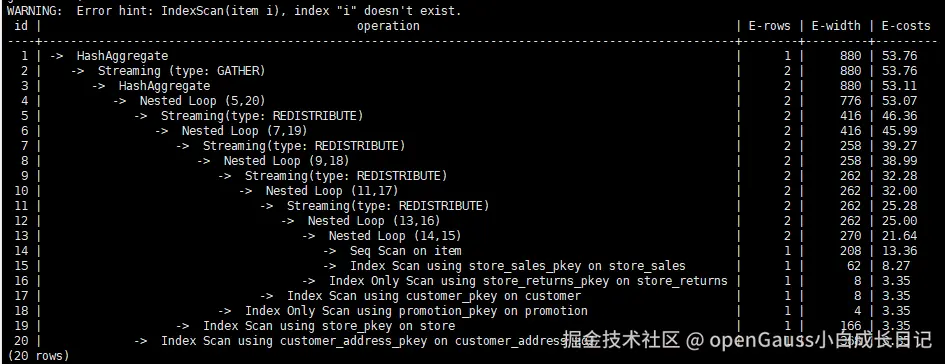 为了hint使用索引扫描,需要首先在表item的i_item_sk列上创建索引,名称为i。