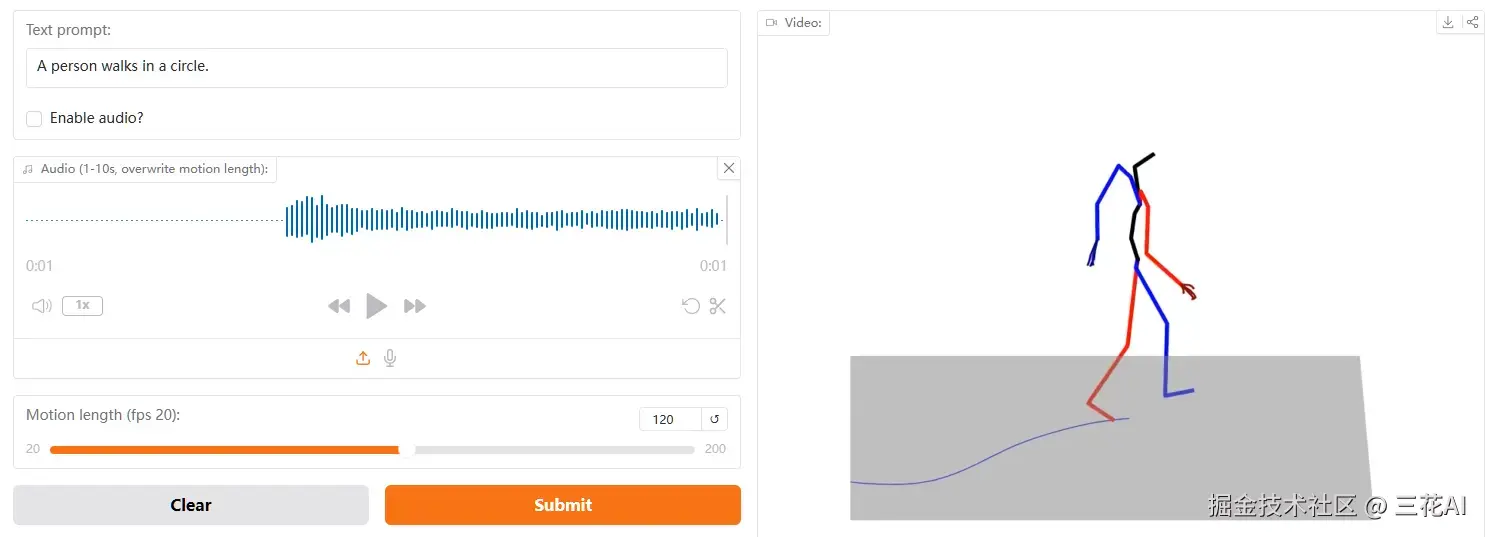 用户只需输入描述,即可生成一段运动姿势视频。目前,该模型已完全开源,支持多模态输入进行控制。你们可以在在线演示[2]亲自体验一下。