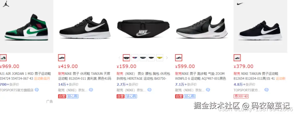 在京东搜索页 search.jd.com/Search 输入搜索,搜出后得到的多个商品列表数据。