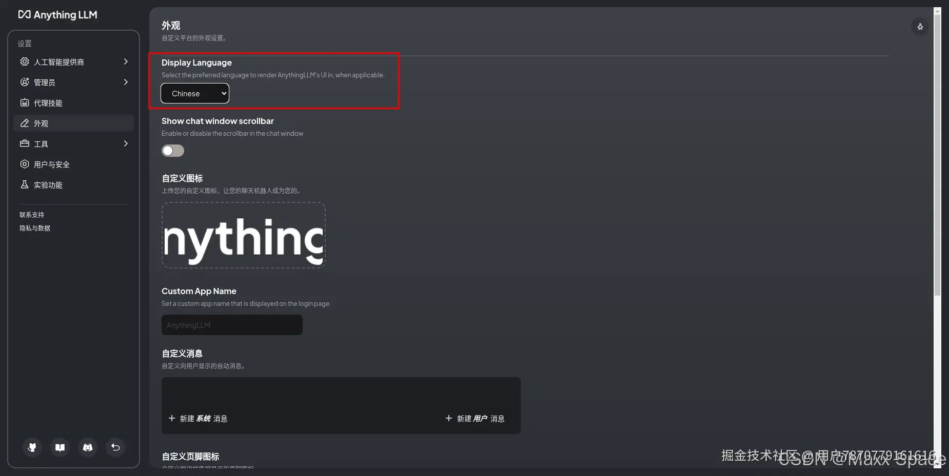首先进入设置 - 外观 - 设置语言为Chinese,这里的汉化并不完全,还是有很多英文的地方,但是不影响使用甚至可以使用翻译插件