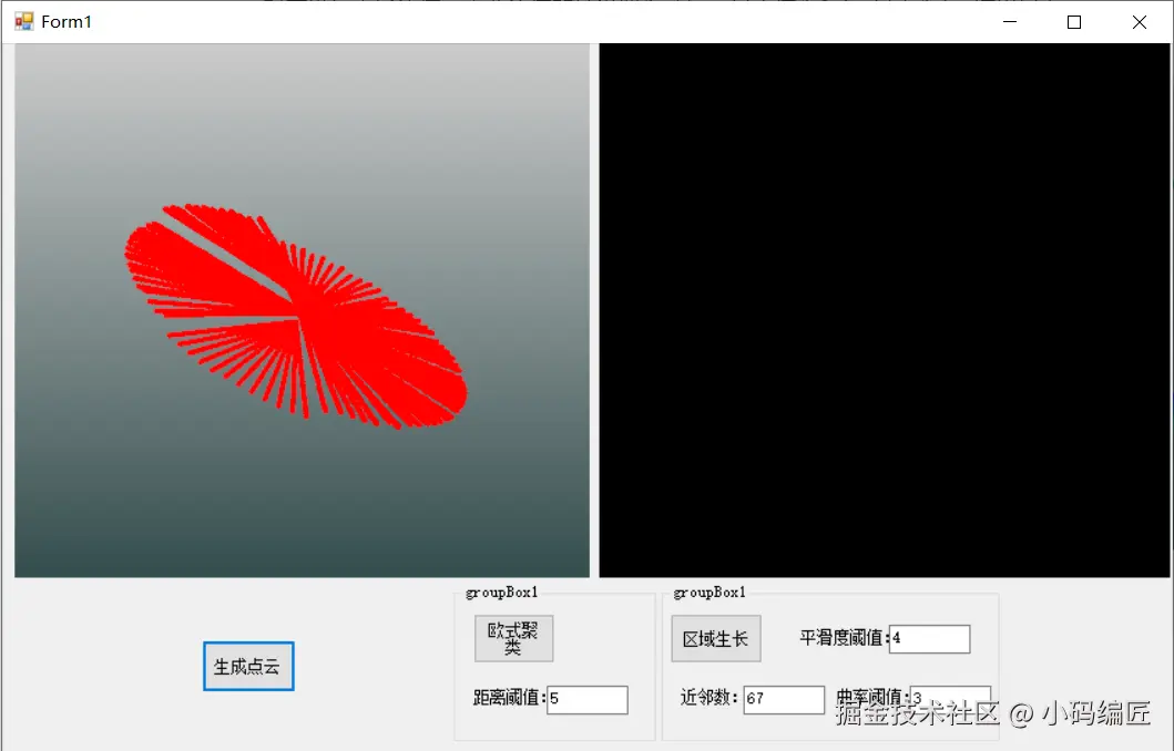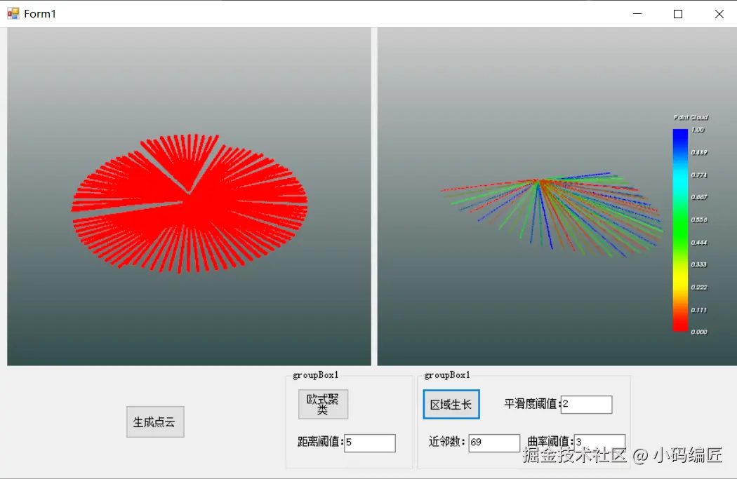 点击生成点云按钮之后,显示框中便会动态地生成圆形点云,见下图