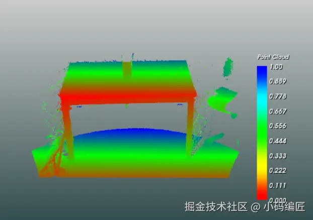 对其进行体素下采样,采样参数设置为0.08,结果见下。可以看到桌子点云变的很稀疏了。