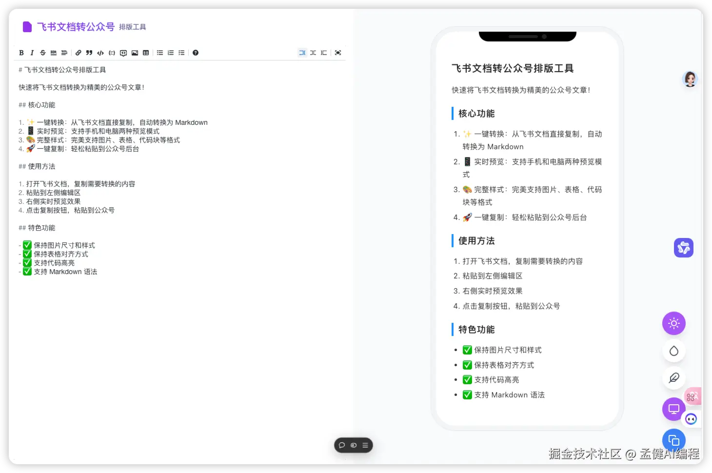- ✨ 一键转换:从飞书直接复制,粘贴即可自动转换格式