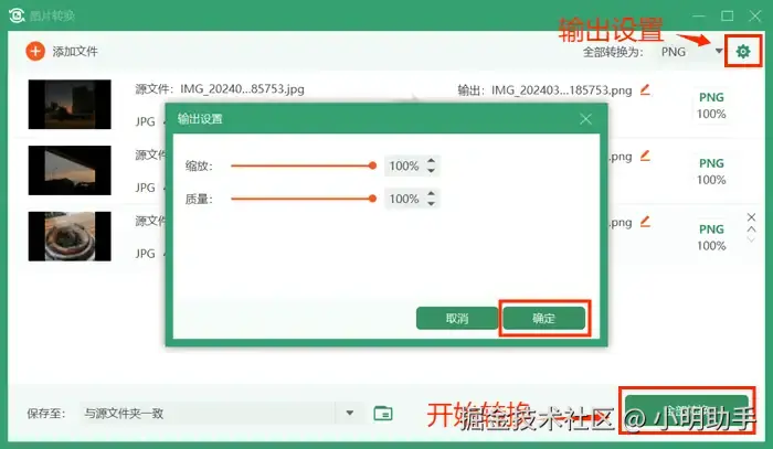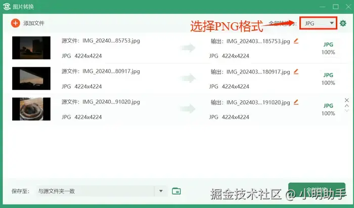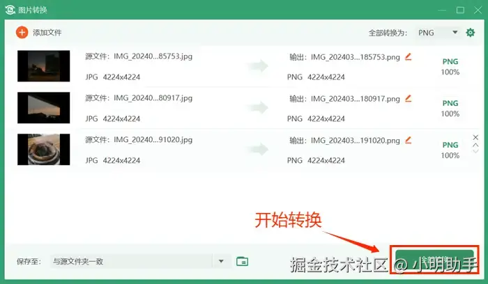 第四步: 完成所有的设置之后点击右下角的【全部转换】开始将图片转png。稍等片刻,图片格式转换就能完成啦。
