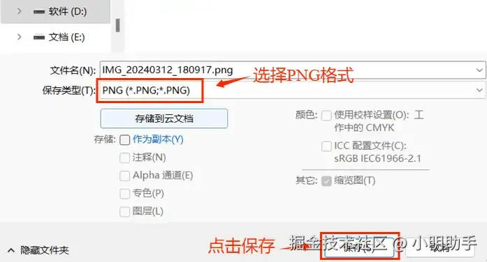 第三步: 选择PNG格式为保存类型,然后点击【保存】按钮保存图片。