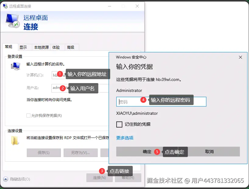 B电脑上:点击右下角搜索“mstsc",利用“mstsc"进行远程。 输入远程地址,点击连接后再把我们A电脑的用户名和密码输入后如下图就OK啦: