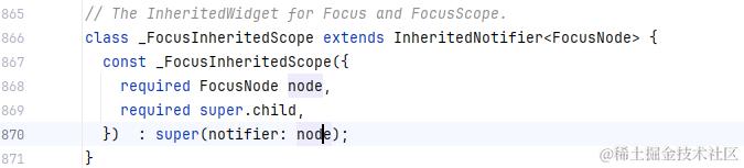 进一步可以看出 _FocusInheritedScope 继承自 InheritedNotifier, 在 《Flutter 组件集录 | InheritedNotifier 内置状态管理组件》 一文中介绍过这个组件,感兴趣的可以去详细了解。