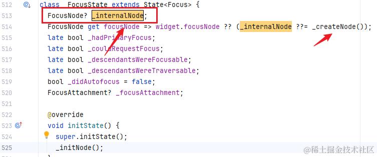 从下面可以看出,默认会取 Focus 组件传入的 FocusNode,如果不传入,会创建 _internalNode 对象来使用: