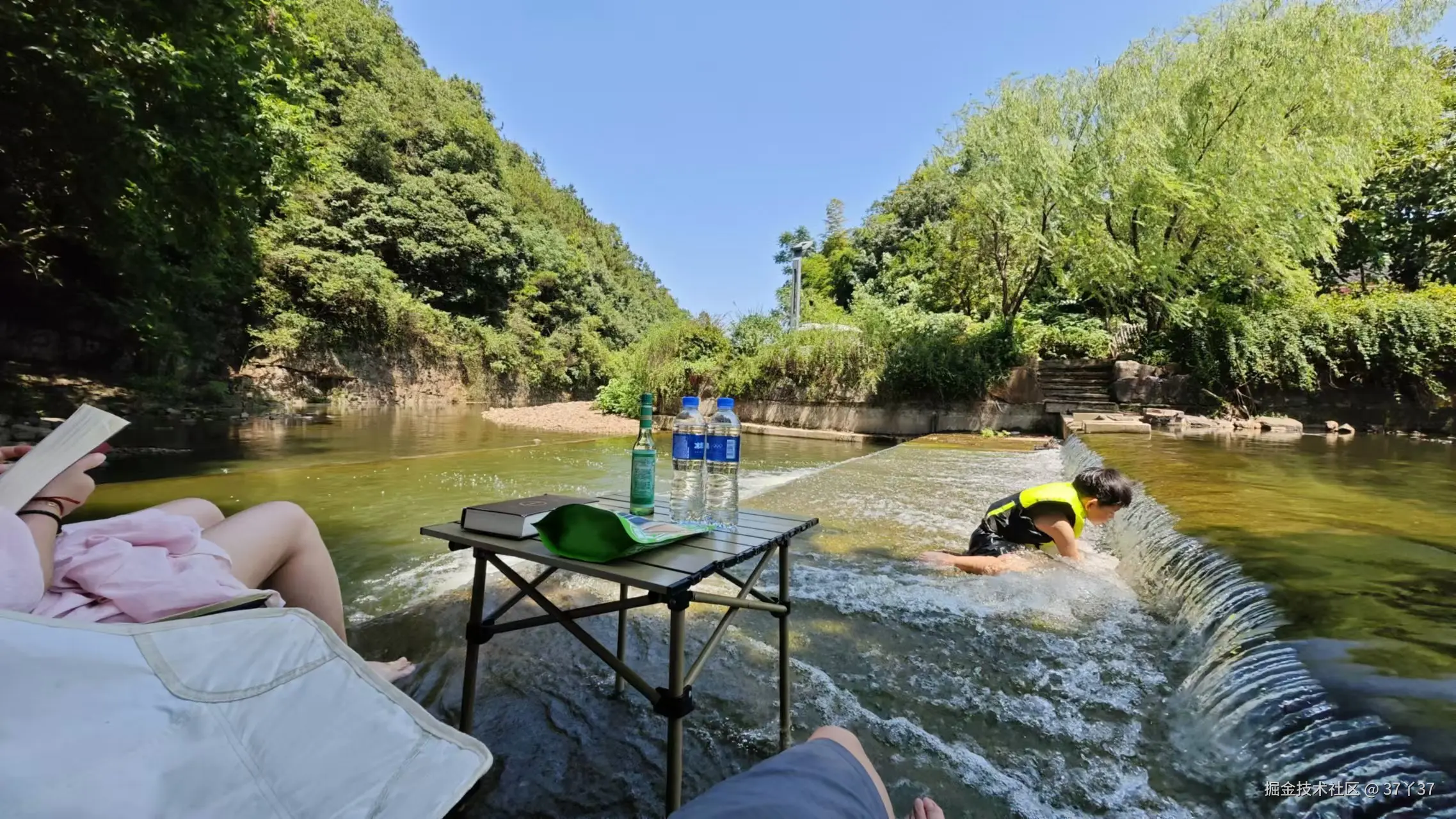 2024年7月上海已进入盛夏,天气炎热,动辄三十几度的天气,又到了玩儿水的季节,我们去了湖州莫干山,找了条清澈的小溪,泡在溪水里。于溪流中撑起桌椅,找个舒服的姿势坐下,双脚踩在小溪里,任溪水哗啦哗啦的流过,带走闷热,带来清凉