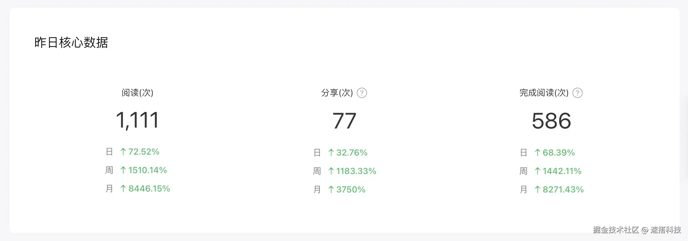 先来聊聊流量吧,也是大多数人比较感兴趣的话题。年初给自己定的目标是,在技术领域,软件开发这个板块,私域好友干到2000人,粉丝突破万人。粉丝这个还好,基本没啥压力,因为之前工作期间就有写一些博客做积累。好友的话原来有七百多人吧,到现在也有一千八百多人了,平均每天三五个,每月也有一百多人。这是之前的数据,眼看目标快达不成了,可是就在最近这几天,有篇文章被平台推荐了,前后涌进来几百人,每天都有新添加的朋友。上午点完下午点,晚上一觉醒来还要点,根本点不完。哈哈,也许是人品爆发了,让我今年认识了这一千多位新朋友,在这里诚挚的向大家问好,很高兴认识你们。也许加上后没怎么深聊,但大多人我都做了备注,也鼓励大家多来沟通,不聊工作,认识下也可以。