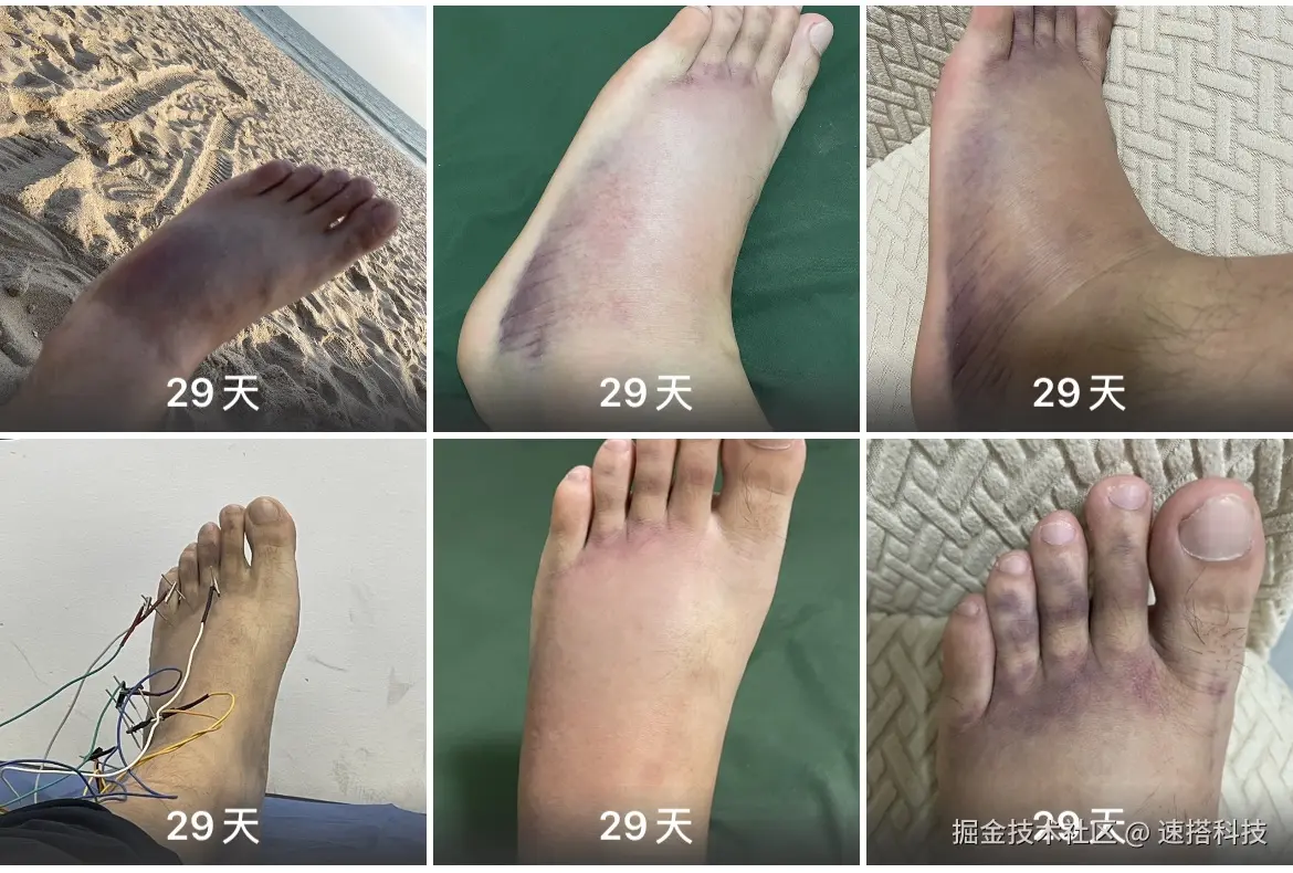 除了眼睛上的伤害,前段时间脚也受伤了,在家待了快一个月。起初以为就是普通的崴脚,当时疼痛难忍,脚踩不到地上无法正常走路,也没有太过在意,以为就是伤的重了,并没有动到骨头。可是过了一个礼拜还不见好,肿还没有消退,也没吃药,想着已经一个礼拜了,那就等半个月后再看看,半个月后发现走路还是有点疼,这时候去医院打算拍片,医生说现在拍也没啥意义了,要拍也是当时拍,过了这么长时间,拍了也看不出来啥。根据我的描述,人家说当时应该是有些轻微裂缝的,普通的崴脚,不会持续那么长时间,于是就开启了治疗方案,针灸电疗,顾名思义,就是插上针,然后再通上电,那感觉叫一个酸爽,反正我是不想再来了。连着治疗了好几天,好在无大碍,到现在也已经慢慢恢复了。