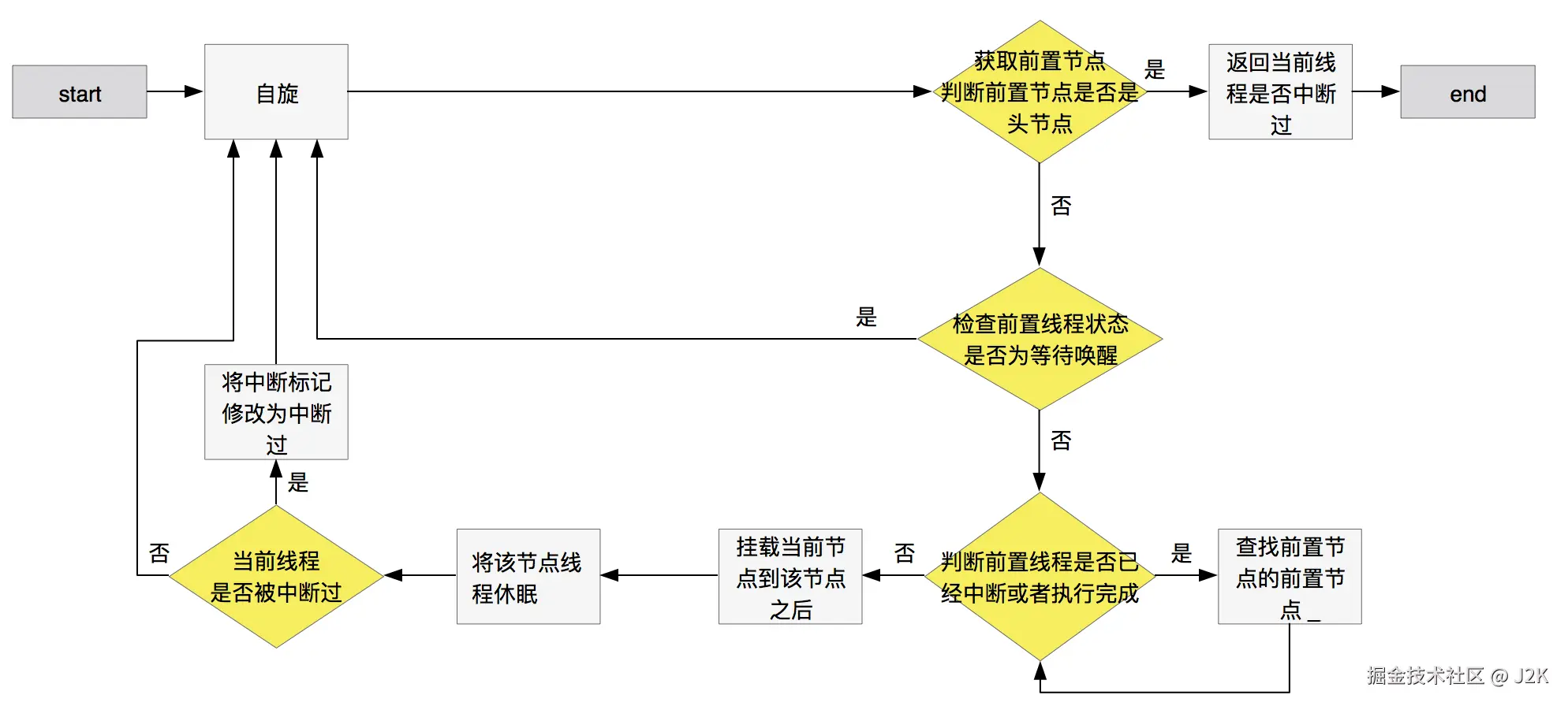 一旦进了队列,线程就进入等待状态,等着被唤醒。这时候 parkAndCheckInterrupt 方法就派上用场,它让线程安静地 “睡” 过去,节省 CPU 资源,直到被前驱节点唤醒,或者被中断信号弄醒,醒来还得检查下是不是被中断过,好决定下一步咋办。