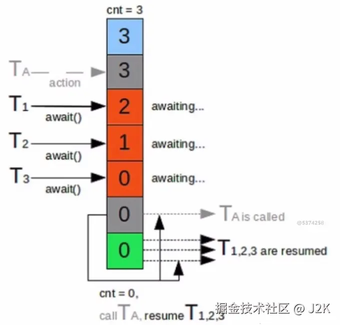 CountDownLatch 就像是一场赛跑比赛的发令枪,它能让主线程或者某些线程乖乖等着,直到其他 “选手” 线程都准备就绪,才一起开跑。