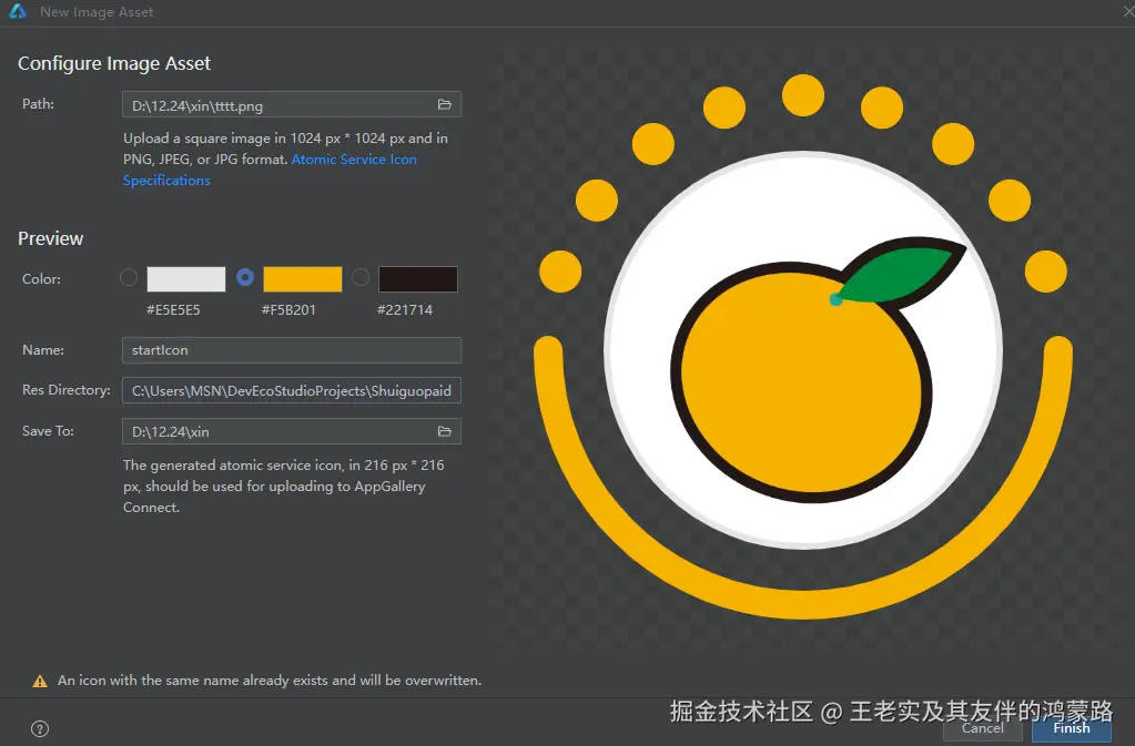 **Res Directory**:生成的512px\*512px尺寸图标在工程中的保存位置。