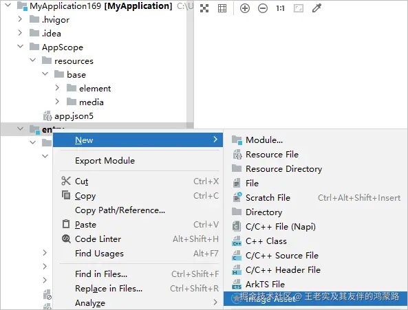 在工程中选中模块或文件,右键单击New > Image Asset,进入图标配置页面。