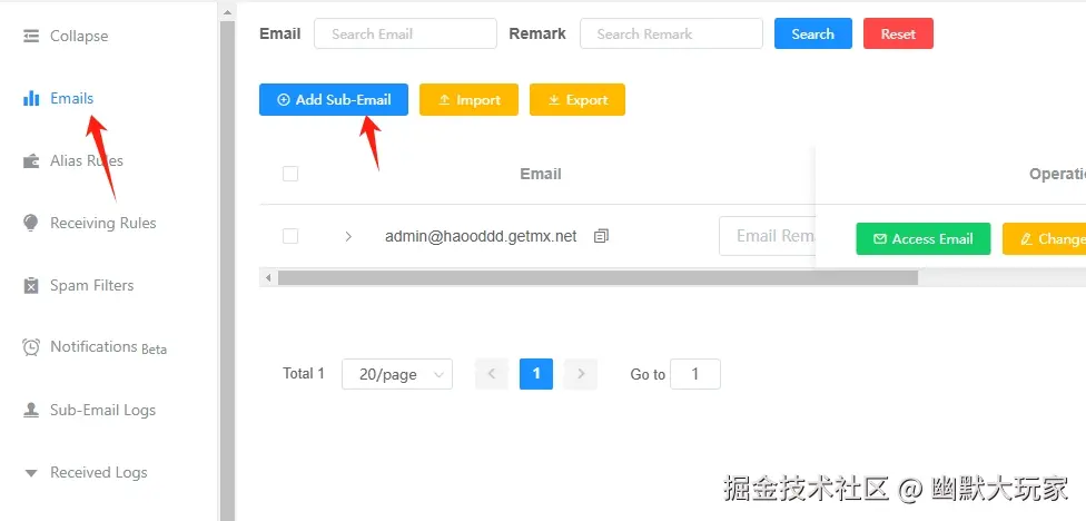 - 左侧菜单栏“Emails”——“Add Sub-Email”