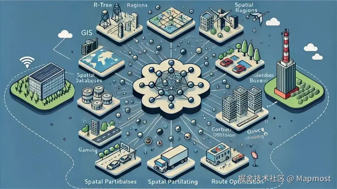 2.数据库索引:许多关系型数据库(如PostgreSQL和MySQL)支持R树及其变体作为空间索引,显著提升了地理空间查询的性能。例如,PostGIS扩展就利用R树为地理数据提供高效索引。