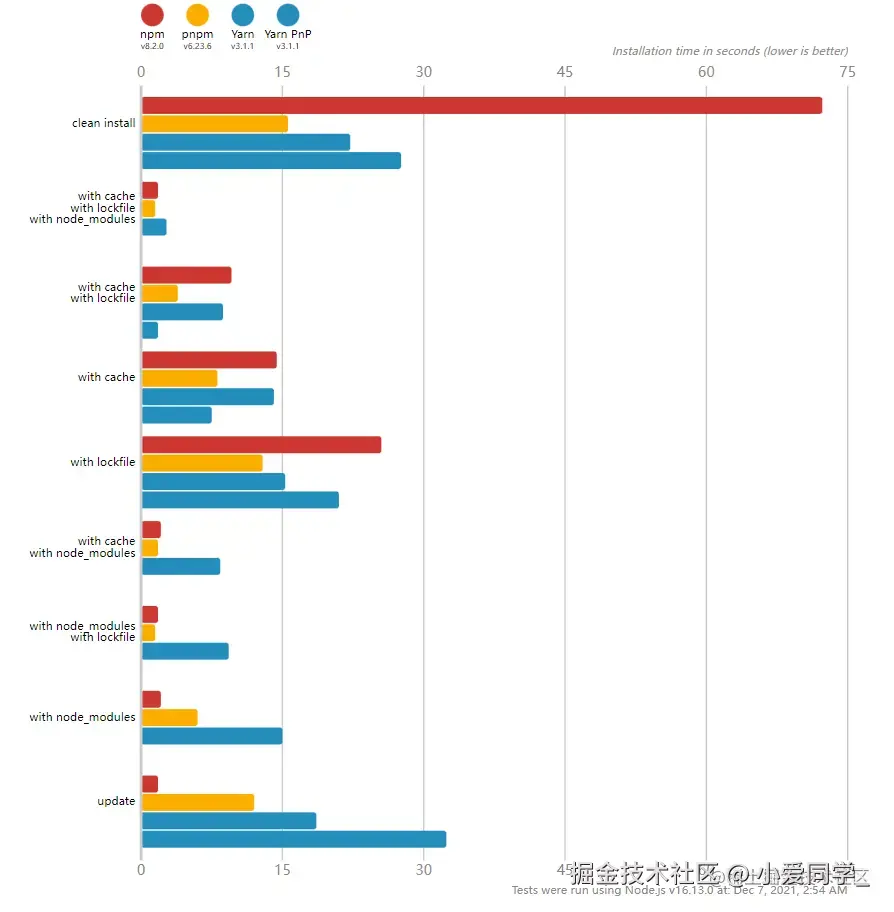 提高安装速度:官网提供的不同包管理在不同场景下的耗时对比如下图所示,原因看链接